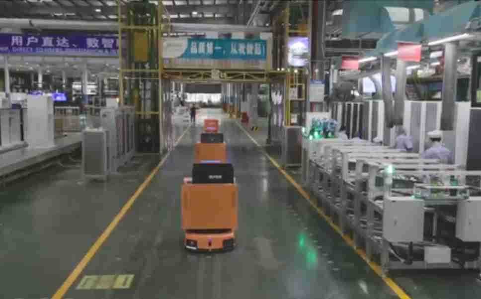 为车载冰箱物流配送打造的智能解决方案,,,,包含产中物流通过潜伏举升AMR搬运至线边,,,产后成品物流智能仓储,,,,流程包含产中物流智能齐套入库,,,线边安灯叫料AMR智能配送至线边,,,成品入库、、、、出库,,,,通过无人堆高车机器人,,智能仓储管理替代人工作业管理,,,实现更高存储、、、、更高效率、、、更具柔性化的解决方案。。。
